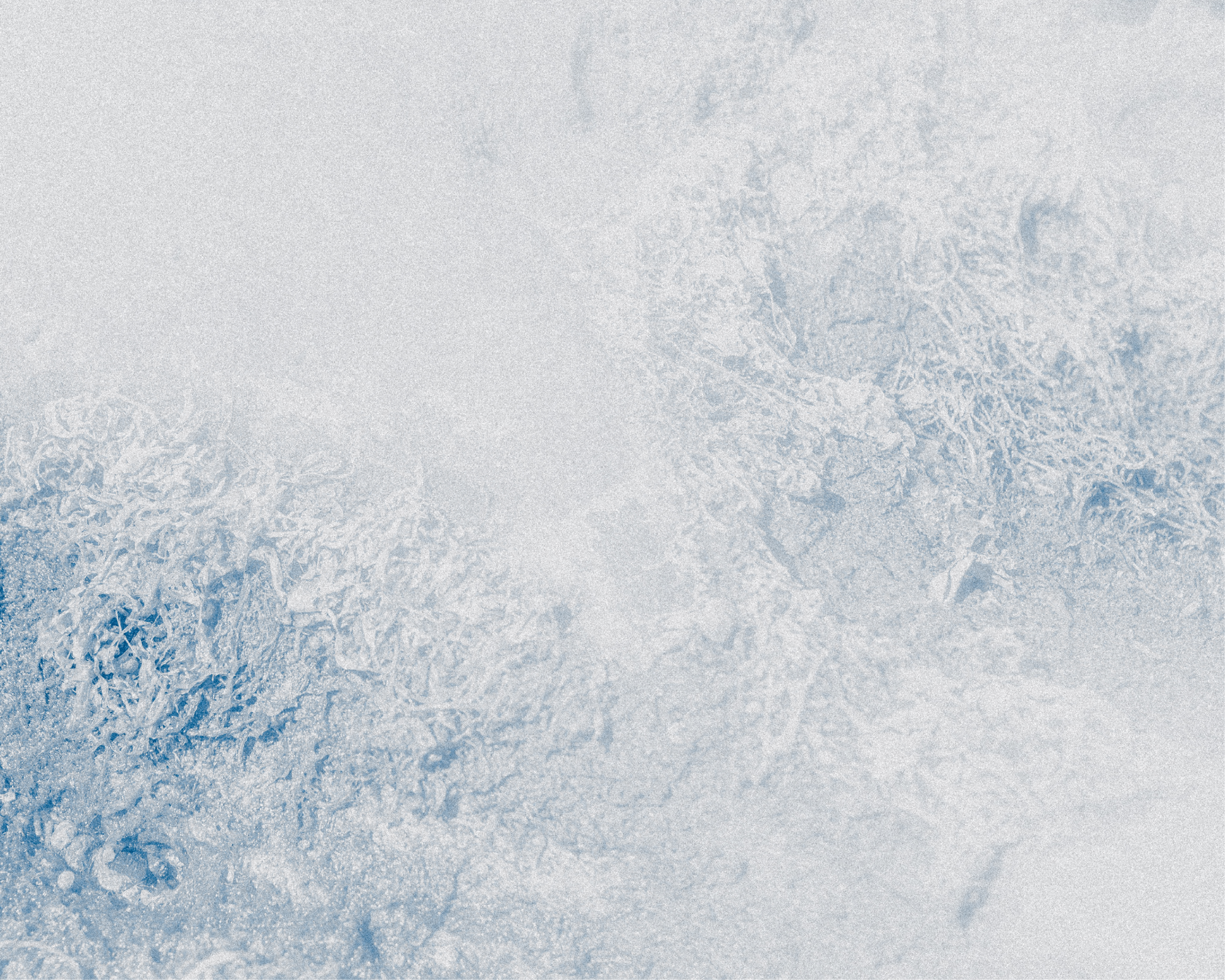 Présentée en grand format sur panneau rigide, la photographie déploie une dimension immersive : l’échelle amplifie les détails, enveloppe le regard et invite le spectateur à entrer dans la matière. L’œuvre impose ainsi une présence physique et contemplative, comme une immersion silencieuse dans un horizon bleu.